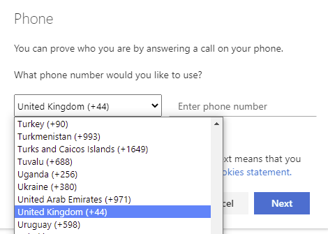 4. Select Text me a code > Next, then provide the 6 digit verification code sent to your device